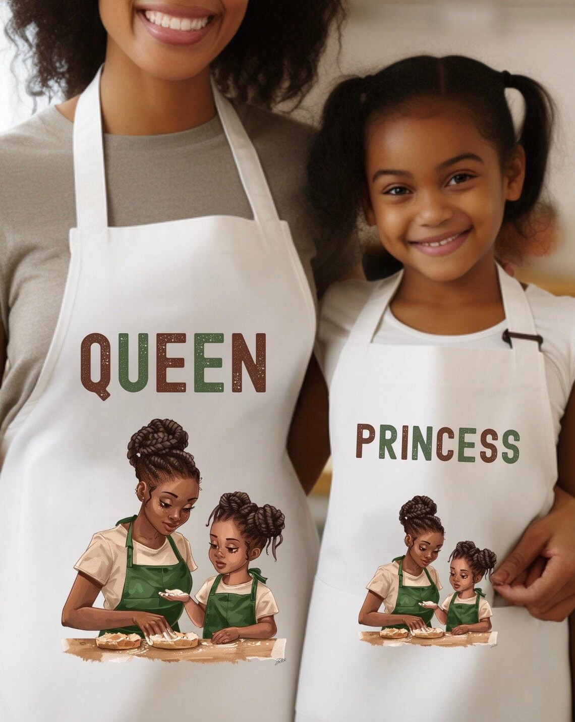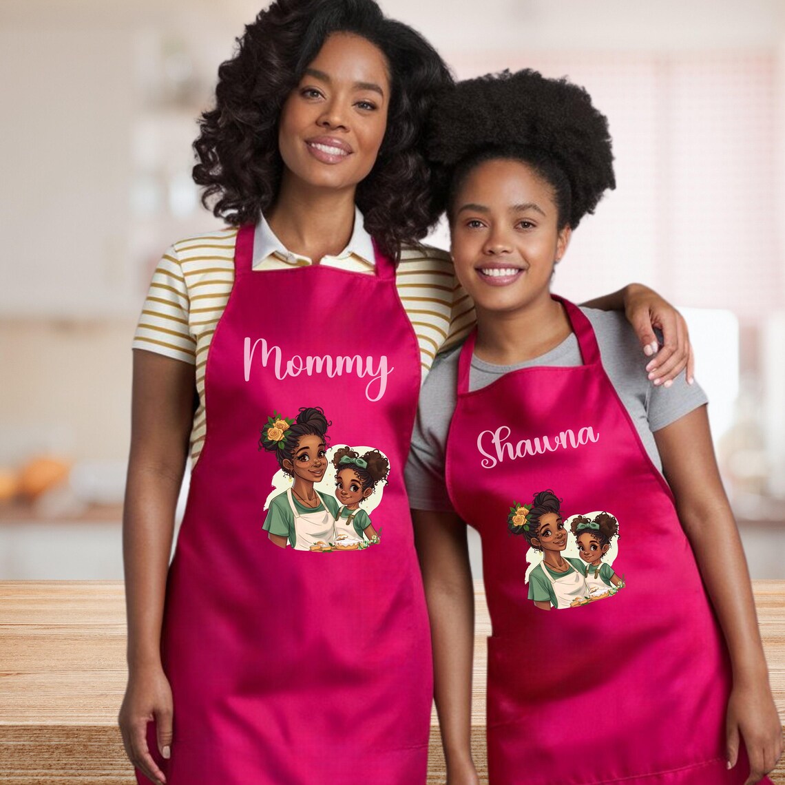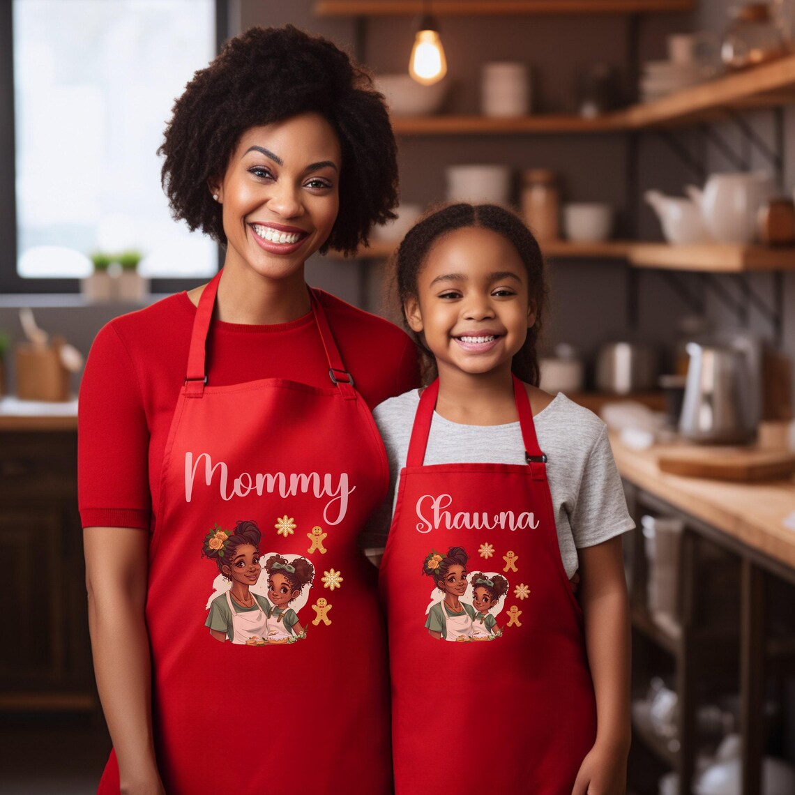 Create memorable cooking moments with our cute matching personalized melanin mother-daughter apron set, perfect for Christmas or birthday gifts. \